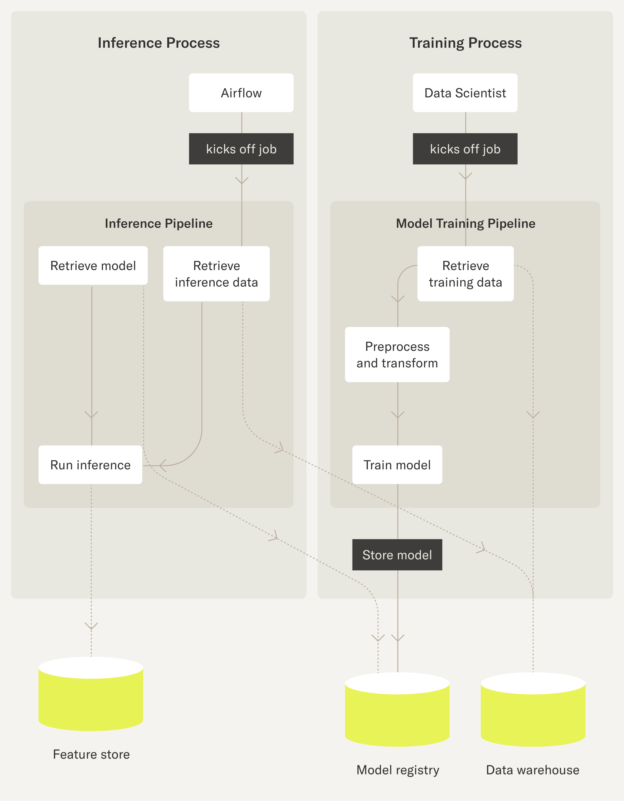 Our setup also required a lot of platform involvement, including tuning resources, granting permissions, and reviewing PRs, which didn’t really allow for workflows and resulted in a sub-optimal developer experience. It also meant that there wasn’t great visibility into what was running, and development took a long time. The riskiness model took months to build!